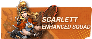 Gunakan Scarlett sebagai Hero DPS utama, gunakan senjata yang memiliki DMG besar, padukan dengan efek peluru tambahan Enhanced Senjata untuk menghasilkan DMG besar. Kombinasi tim dengan Gru Kang dan Nadia akan memberikan Peningkatan Abnormal DMG dan Ignore DEF bagi Scarlett.