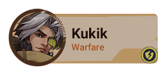 Sebagai Hero Support dalam tim, tugas utama Kukik adalah menambahkan Mark DMG saat melancarkan Ultimate Skill, serta meningkatkan Peningkatan DMG Abnormal. Karena itu, kemunculannya tidak perlu lama. Di sisi senjata, padukan Kukik dengan Bow Peningkatan DMG Tim versi baru untuk meningkatkan DPS tim. Saat tidak memiliki War Bow, pilih senjata IGNITE atau FREEZE untuk melengkapi status Abnormal yang bisa ditambahkan ke tim.